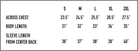 | Sleeve | 22.25" | 23.25" | 24.25" | 25.25" | 26.25" | 27.25" | - |